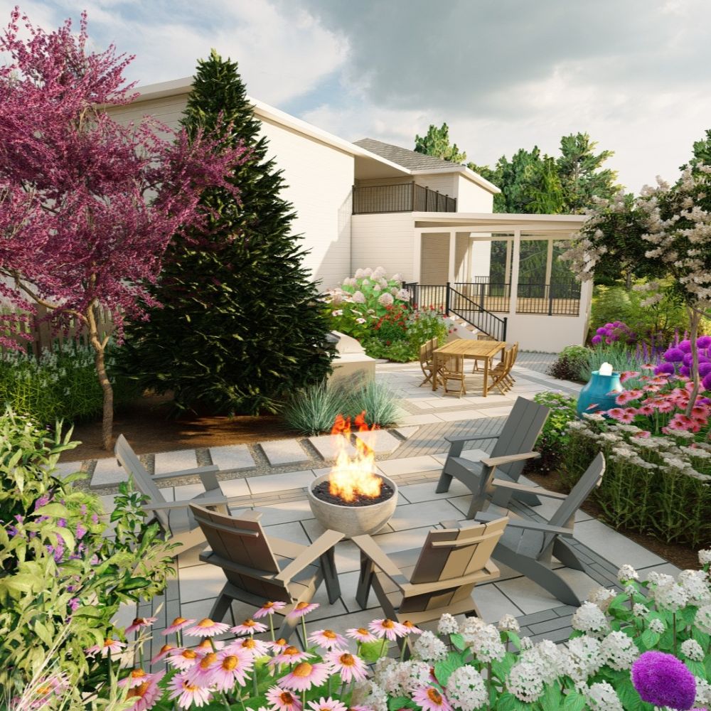 Functionality always comes first in Lillian’s designs. She begins every project by diving deep into how a space will be used, whether that’s hosting outdoor meals, gathering around a fire pit, enjoying quiet conversation, or creating flexible areas for multiple activities. From there, she layers in materials, geometry, planting design, and details that elevate the experience without sacrificing ease of use. Her work often features clean-lined hardscapes paired with flowing, textured plantings that feel intentional yet organic.